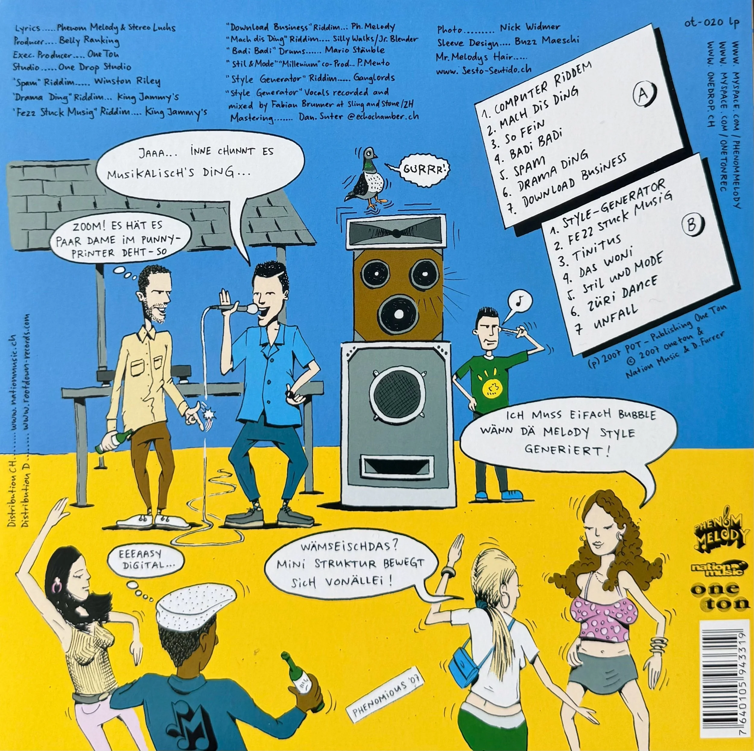 Phenomden nennt sich 2007 eine Saison lang Phenom Melody, um als „Style-Generator“ dem digitalen Reggae der 80er Jahre zu huldigen. An seiner Seite erstmals überhaupt auf Tonträger zu hören ist Stereo Luchs. Ein rundum witziges Album mit Kult-Tracks wie “Badi Badi”, “Style-Generator”, “Spam” oder “Unfall” und einer Comic-Rückseite, die Phenomden selbst gezeichnet hat. Original 2003 erschienen und nach einiger Zeit vergriffen, ist nun die neue 2025er-Neuauflage erhältlich - und nur auf Vinyl auch als Remaster!